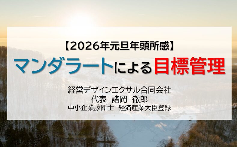 【経営コンサル】2026年の目標管理「マンダラート」 2026/01/01 経営関連 こんにちは、中小企業診断士の諸岡です。 新年あけましておめでとうございます。 2026年も何卒宜しくお願い申し上げます。 2026年も恒例の… READ MORE